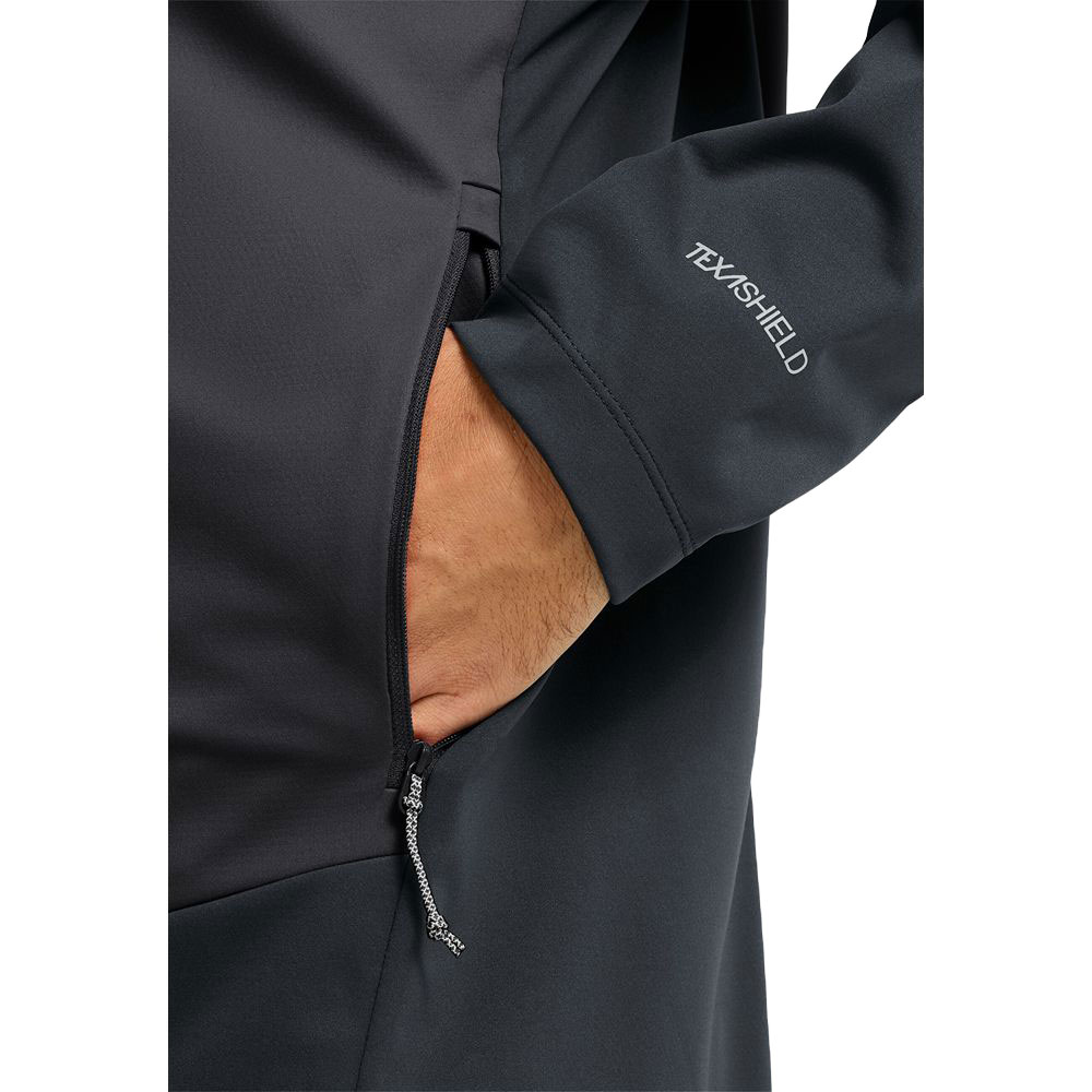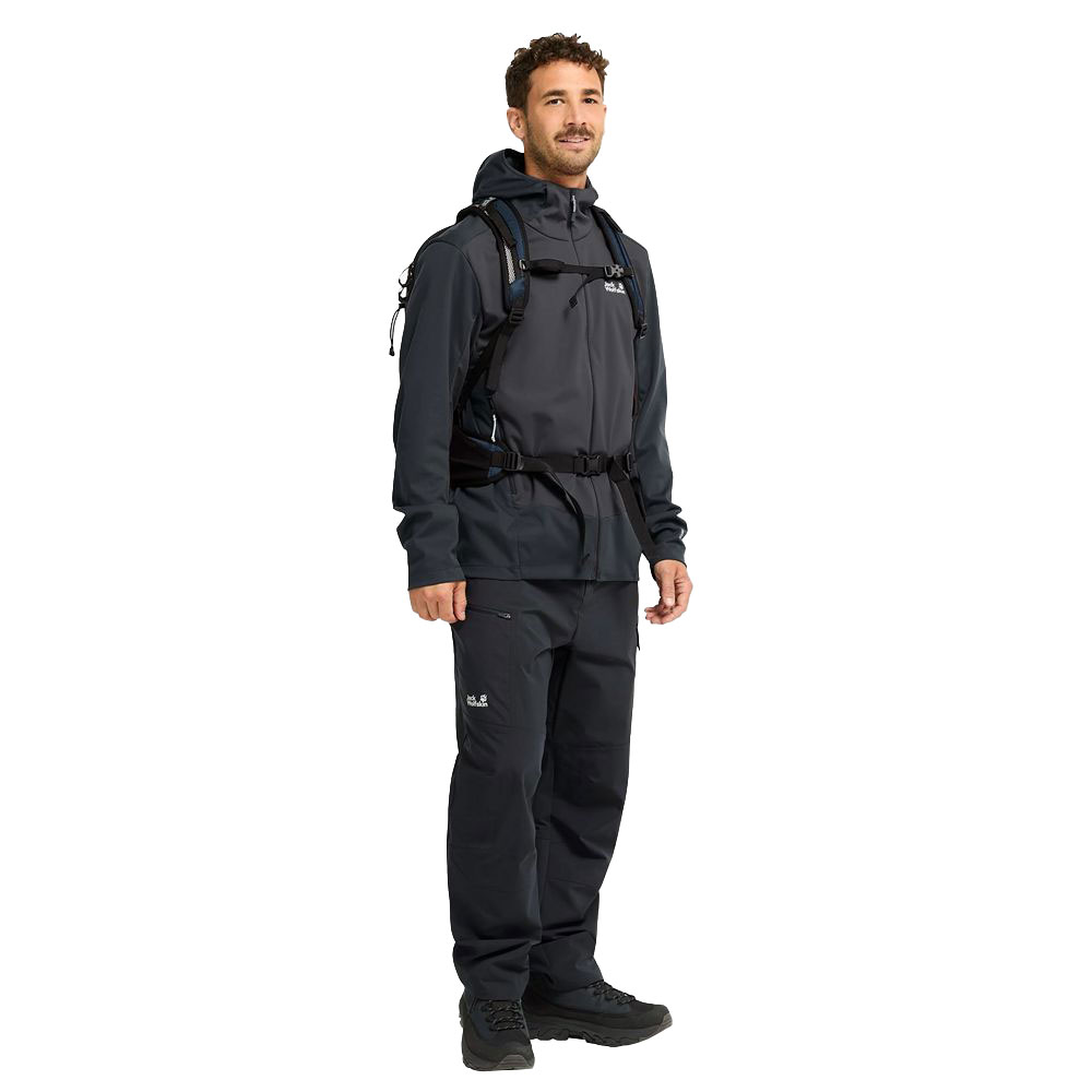 De Jack Wolfskin Skyvail Jacket is een technische softshelljas ontworpen voor ambitieuze wandelingen en outdooractiviteiten waarbij windbescherming en bewegingsvrijheid essentieel zijn.