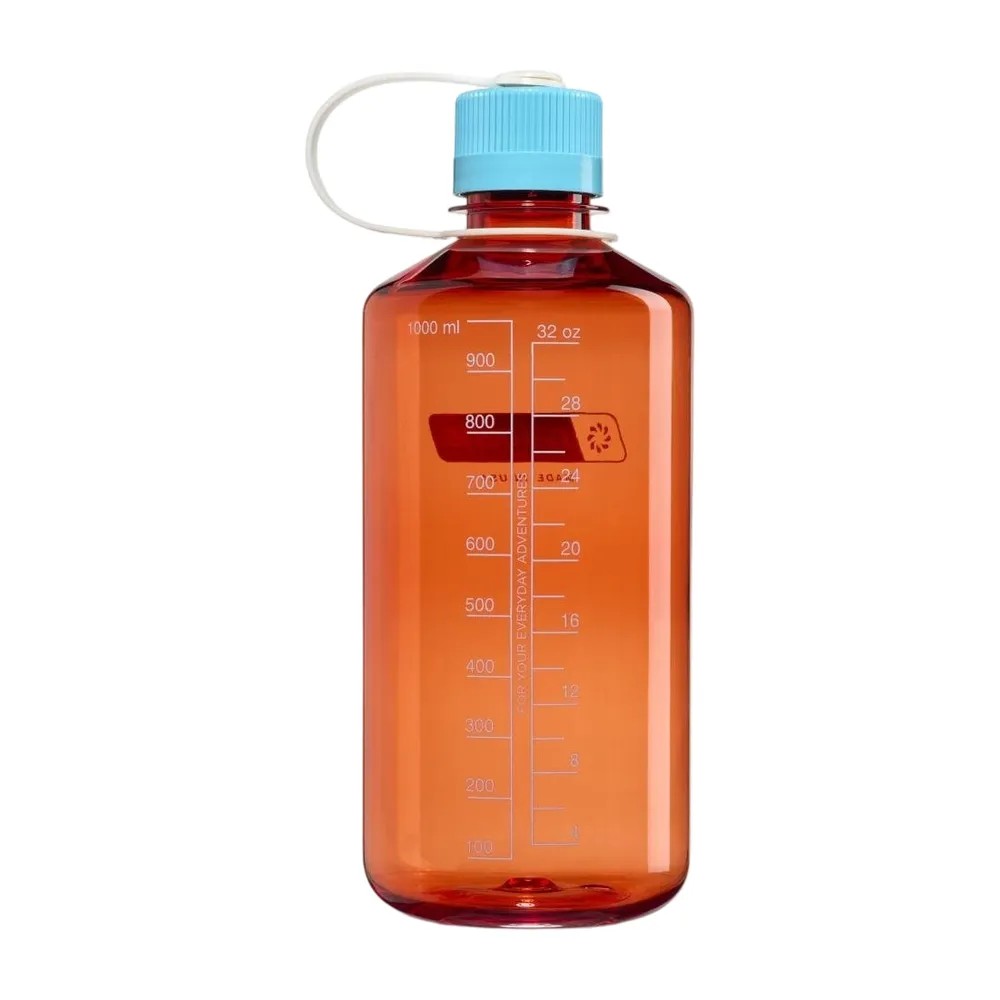 Nalgene Narrow-Mouth 1L Flame w/Blue Atoll Rood