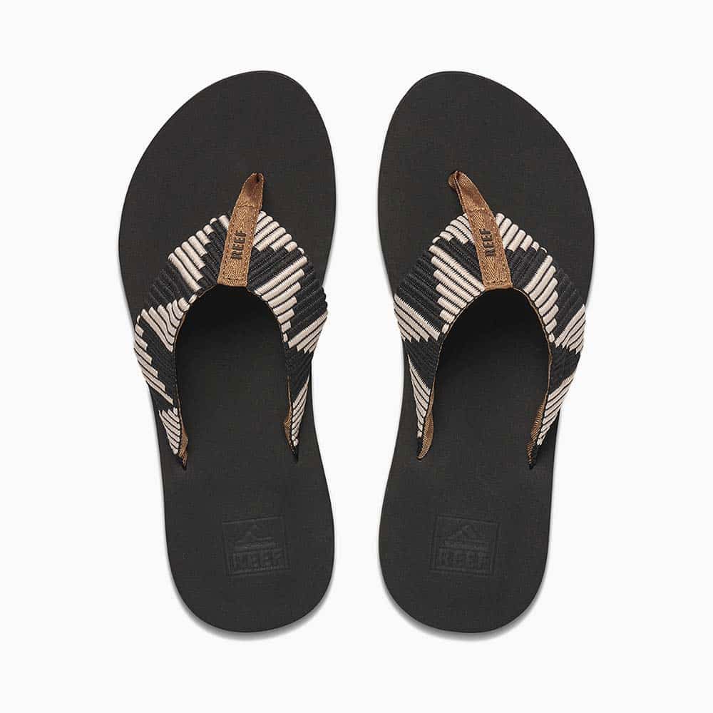 De Spring Woven van Reef is een comfortabele en stijlvolle slipper voor dames. De brede band met leuk motief is gemaakt van gerecyclede plastic flessen. De zachte en anatomisch gevormde voetbed geeft ondersteuning en demping. De slipper heeft ook een zacht teenstukje voor meer draagcomfort. De zool geeft ook op natte ondergrond goede grip.