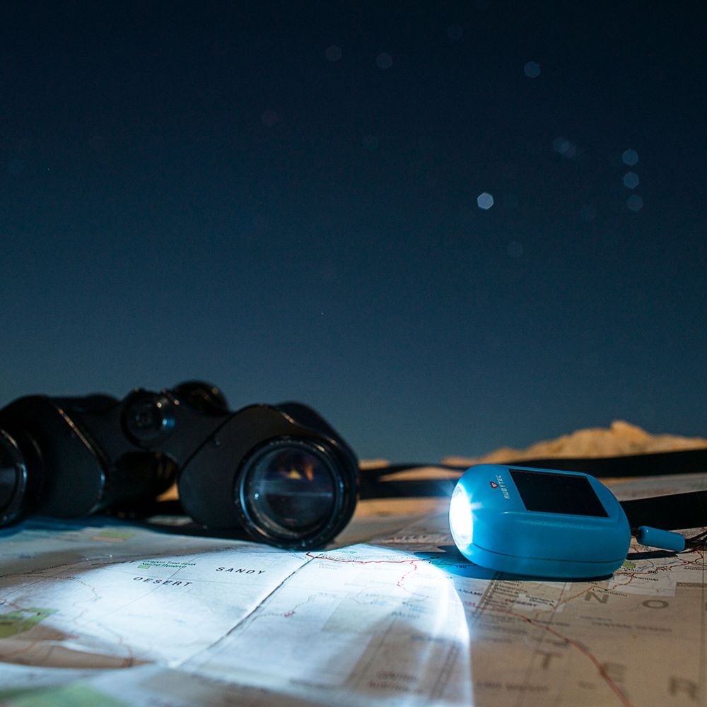 De Kao Flashlight is een lichtgewicht minizaklamp met twee LED`s en heeft geen batterijen nodig. Het zonnepaneel (mono-kristal) zorgt ervoor dat de Kao opgeladen blijft. En in noodgevallen kunt u de draaihendel gebruiken. 1 minuut draaien geeft ongeveer 3 minuten licht. De Kao weegt slechts 25 gram en past aan iedere sleutelhanger.