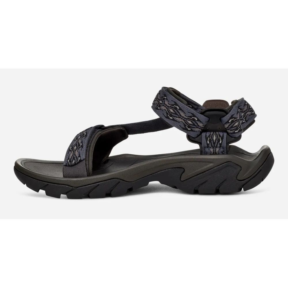 De Teva Terra Fi 5 is een robuuste herensandaal en is zeer geschikt voor lange wandelingen met een (zware) rugzak. De stevige en slijtvaste zool is gemaakt van Spider Original rubber voor veel grip op een gladde en glibberige ondergrond. De tussenzool geeft stabiliteit en biedt ondersteuning en demping van de voet op oneffen en hard terrein. De voetzool is behandeld met Life Naturals, een milieuvriendelijke antimicrobiële stof op basis van pepermunt die de groei van geurveroorzakende bacteriën bestrijdt. Het bovenwerk is van waterbestendig polyester. Achter de bandjes en ringetjes zitten zachte stukjes van mesh stof. Deze polstering voelt heerlijk zacht aan en voegt extra comfort toe. Dankzij de handige klittenbandsluiting op drie punten trek je probleemloos en in mum van tijd de sandaal aan en uit, en stel je ze eenvoudig en nauwkeurig af.